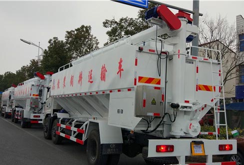 此次用戶訂購(gòu)的這批散裝飼料運(yùn)輸車是于農(nóng)歷新年前訂購(gòu)的,也是該用戶前期定購(gòu)2臺(tái)液壓飼料運(yùn)輸車后又再次訂購(gòu)的電動(dòng)絞龍散裝飼料運(yùn)輸車。該車采用東風(fēng)天錦小三軸系列底改裝,康明斯210馬力發(fā)動(dòng)機(jī),11.00R20鋼線胎,標(biāo)準(zhǔn)分4倉(cāng)。