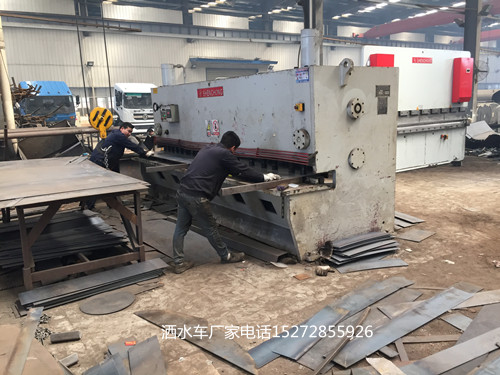 灑水車罐車內部的波浪板制作需要用的機器不同一些,首先同樣是通過等離子切割機裁剪出弧形板塊,然后是通過折彎機把弧形鋼板變成波浪的形狀。而波浪板中的人孔則是液壓機一次性沖壓成型的。至于波浪板、人孔的包邊和炮筒則需要用到剪板機。