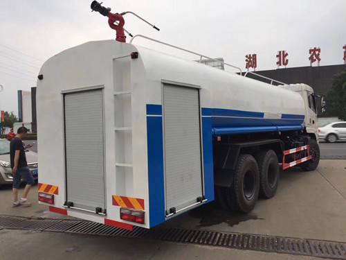 保定用戶購(gòu)置15噸東風(fēng)T5保溫運(yùn)水車帶灑水車發(fā)車,該車夏季用戶綠化噴灑使用,而且駕駛室前置電動(dòng)灑水炮,冬季用來運(yùn)輸熱水,一車多功能。