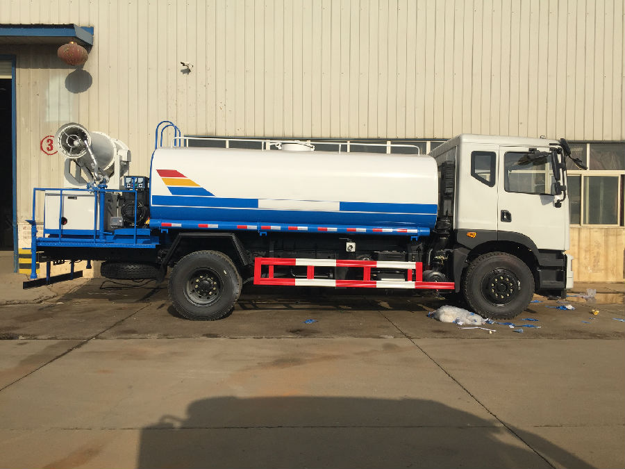 單橋可裝50-60米噴霧機(jī)車型,閃亮登場。整車型號(hào):DLQ5180GSSL5,底盤型號(hào)EQ5180GLVJ,東風(fēng)新款T5駕駛室,4500MM軸距,國五,康機(jī)190馬力,陜齒小八檔變速箱,帶原裝ABS。前沖后灑,后工作平臺(tái)帶高炮,右位花灑,側(cè)噴。前橋5噸,后橋10噸,10.00鋼絲胎。后平臺(tái)上加裝50米霧機(jī),水平射程50--55米,發(fā)電機(jī)組30KW,風(fēng)機(jī)電機(jī)11KW,水泵電機(jī)3KW。