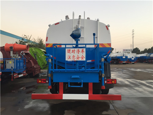 灑水車(chē)整車(chē)后部安裝有遠(yuǎn)射程高壓水炮(噴槍?zhuān)梢詫?shí)現(xiàn)遠(yuǎn)距離噴灑,調(diào)節(jié)噴嘴可以實(shí)現(xiàn)柱狀和霧化噴灑作業(yè);噴灑管路裝有氣動(dòng)球閥和不銹鋼球閥,可實(shí)現(xiàn)自動(dòng)和手動(dòng)雙重操控,在駕駛室內(nèi)可直接操控噴灑作業(yè),操作簡(jiǎn)便;灑水車(chē)罐體安裝有水位計(jì)和低水位報(bào)警系統(tǒng),便于司機(jī)控制噴灑作業(yè)狀況。