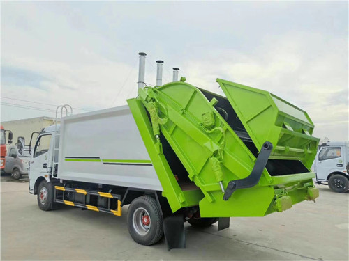壓縮式對(duì)接垃圾車(chē):裝備有壓縮裝置、提升裝置機(jī)構(gòu)等專用裝置,用于收集垃圾和大型 垃圾車(chē)對(duì)接裝料的專用自卸運(yùn)輸汽車(chē)。