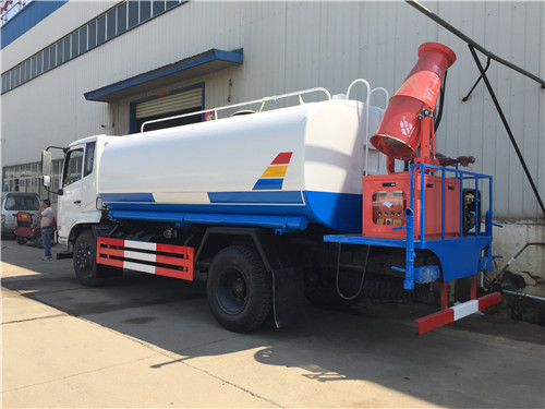 灑水車前裝有鴨形噴嘴或圓頭沖嘴,后面裝有圓柱開灑水噴嘴或蓮蓬頭噴嘴,后部有一工作平臺,裝配有水炮。后部還可裝8個噴嘴(選裝)噴水器一般用于沖洗街道,起除塵和降溫作用,其噴水器可以用調(diào)節(jié)噴嘴螺紋的方法改變噴水器的噴灑方向和角度,高射水炮可以用于城鄉(xiāng)園林綠化及應急消防。蓮蓬嘴可以澆落路中間噴水器沖起的灰塵,起到清潔空氣的作用。