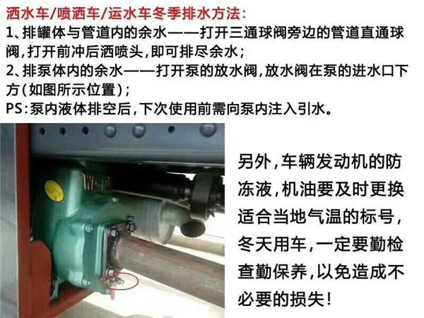 抽水時,先將抽水管連接在法蘭盤上,然后將四位三通球閥的凹點位置扳至罐體管道方向(凹點所在方向管道為關(guān)閉狀態(tài),即連通抽水口與泵體之間的管道),然后打開直通球閥(手柄平行于管道時為打開,與管道呈90度角時為關(guān)閉),這才是正確的抽水閥門位置,打錯其中任意一個管道都不能形成通路,自然是抽不上來水的。這也是新手操作灑水車常常會遇到的問題。