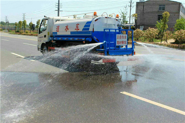 上裝配置:罐體容積:4.5立方(裝水4.5噸),罐體鋼板采用Q235碳鋼鋼材,前沖后灑、側(cè)噴、平臺高炮、自流閥及消防接頭各1個、水管2根、標(biāo)配億豐泵或金龍泵,霧炮機(jī)可選裝20-35米,