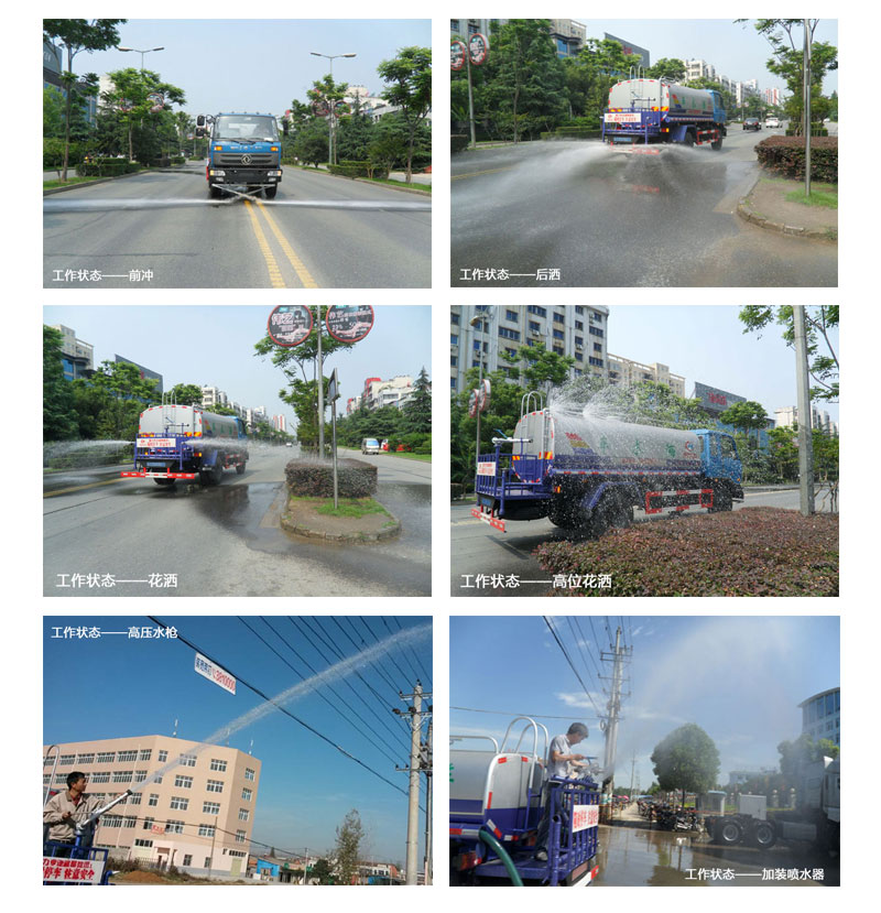 用戶可自帶底盤我廠提供上裝部件的生產(chǎn)改裝,我生產(chǎn)的灑水車均為多功能綠化噴灑車,可滿足不同用戶在不同的使用環(huán)境中使用: