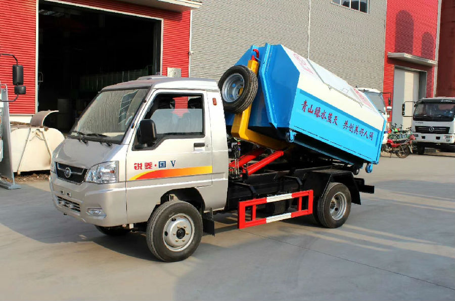 掛桶式垃圾車:垃圾斗固定在車身,可翻起自卸。在車廂一側(cè)有提升機(jī),可將垃圾桶掛上自動(dòng)倒入垃圾箱內(nèi)。垃圾桶放在路邊或小區(qū),隔一段距離放一個(gè),可放240升350升的塑料桶。