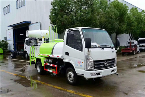 抑塵車前噴頭位置較低,靠近地面,噴灑壓力較大,可用于沖洗路面;后噴頭位置較高(抑塵車后噴頭一般左右各安裝一個),灑水面較寬,可用于公路施工灑水,使用后噴頭時,應將前噴管關(guān)閉;使用可調(diào)噴頭灑水時,灑水寬度可根據(jù)需要調(diào)整。灑水寬度越寬,中間重疊量越少,灑水密度越均勻。