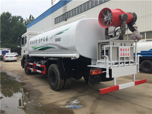 霧炮灑水車集灑水、噴藥于一體,罐體面積達6.563立方米,由電腦全程控制,噴射距離長達50余米,對噴射面積大、距離長、樹木高的綠化是最大優(yōu)勢,而且可以提高幾倍的效率。