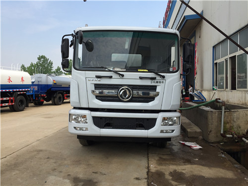 4、東風福瑞卡5噸灑水車的維護與安全:灑水車底盤和發(fā)動機部分的使用和保養(yǎng),按載重灑水車使用說明書執(zhí)行。水泵的使用和保養(yǎng),嚴格按其使用維護說明書執(zhí)行。水源不能有過多雜質(zhì),過濾器網(wǎng)應(yīng)該經(jīng)常拆洗。冬季來臨前,灑水車應(yīng)將水泵和水管內(nèi)的水放空,以防凍裂。灑水車吸水時進水管系統(tǒng)必須保持一定的真空度,才能將水吸入箱內(nèi),故進水管系統(tǒng)務(wù)必密封可靠.每次工作完畢后,均應(yīng)將各閥門手柄扳至關(guān)閉狀態(tài)。各閥門一般不應(yīng)處于半開狀態(tài),以免影響密封性能。每次工作完畢后,均應(yīng)及時蓋上進、出口外端的堵蓋。水裝載量不宜超過額定裝載質(zhì)量。