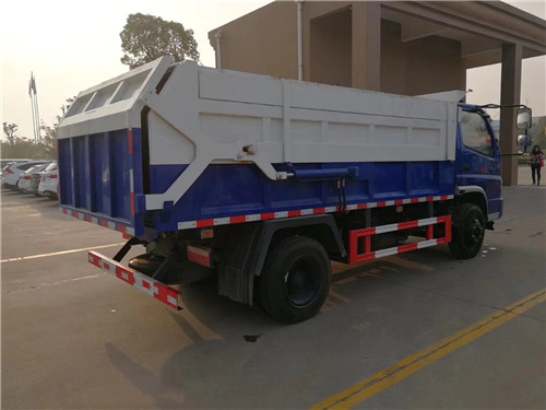 福田時代中馳密封自卸垃圾車功能說明:零散垃圾由箱體兩邊的側門投入,進行收集,然后轉運至垃圾中轉站或者是垃圾填埋場等場所,垃圾箱頂部封閉,不可開啟。