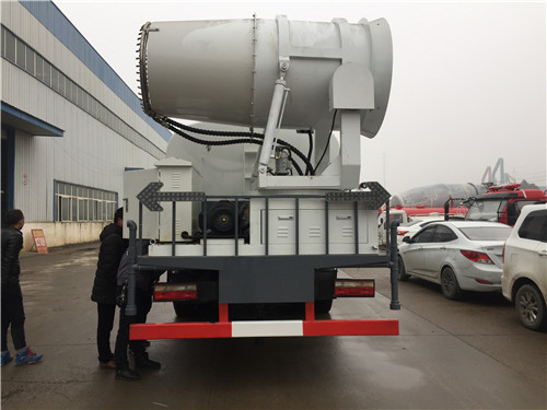 5.配套柴油發(fā)電機(jī)組供電安裝在運(yùn)輸車輛上,操作靈活,使用安全可靠,遙控和人工控制操作,可隨意控制調(diào)節(jié)水平旋轉(zhuǎn)噴霧角度。