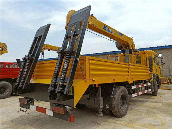 東風(fēng)隨車吊可采用東風(fēng)后雙橋底盤,齊心新款駕駛室佩帶氣囊座椅,電動(dòng)升降玻璃,電動(dòng)液壓升降駕駛室,方向助力,斷氣剎,abs防抱死,玉柴240馬力和玉柴270馬力國五發(fā)動(dòng)機(jī),10.00R20鋼絲胎,5噸前橋東風(fēng)德納10噸雙后橋,懸掛也采用重載設(shè)計(jì),保證承載性能。法士特小8檔變速箱,外形尺寸10450,9980×2500×3200(mm),總質(zhì)量25噸上戶噸位13噸車身自重10.9噸,。標(biāo)準(zhǔn)型上裝橫梁采用12*12規(guī)格6mm厚方鋼,整根貫穿式設(shè)計(jì),保證承載性能,貨箱平板8mm厚花紋板;重載型上裝橫梁采用12*10規(guī)格8mm厚方鋼,整根貫穿式設(shè)計(jì),承載性能更好,貨箱平板8mm厚花紋板,爬梯采用重載加強(qiáng)型設(shè)計(jì),采用三道筋雙簧加固處理,帶有后支腿,平板帶有斜支撐,貨箱平板可以伸縮,伸出3米,縮回2.5米,貨箱平板長(zhǎng)度8米,是運(yùn)輸20噸-30噸大型貨物、大型工程機(jī)械等最理想的隨車吊。