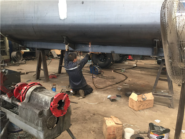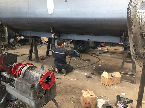 灑水車罐體在焊接工位上采用氣體保護焊接自動焊接而成,保證罐體焊縫質(zhì)量的原樣性。罐體的長度采用一次成型的整體式縱梁焊接,確保罐體的強度,罐體要進行整體噴丸工藝處理,以消除焊縫應(yīng)力和整體除銹。