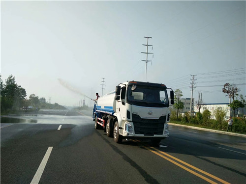 灑水車罐體配置:罐體容積5立方米。罐體采用武鋼4.3mm厚,優(yōu)質(zhì)大型碳鋼板一次卷壓成型,完全做到無縫成型,中間隔板下端有通孔,每倉中間焊有加強防波隔板,以減輕罐體內(nèi)部水的沖擊提高剛度。罐體外表涂防銹漆及裝飾漆。罐內(nèi)做防腐處理,噴涂環(huán)氧樹脂飲用水專用防腐漆,罐體及各保險杠貼紅白色視覺反光條,罐體兩側(cè)噴“灑水車”字樣;罐體顏色上白下綠或上白下藍。