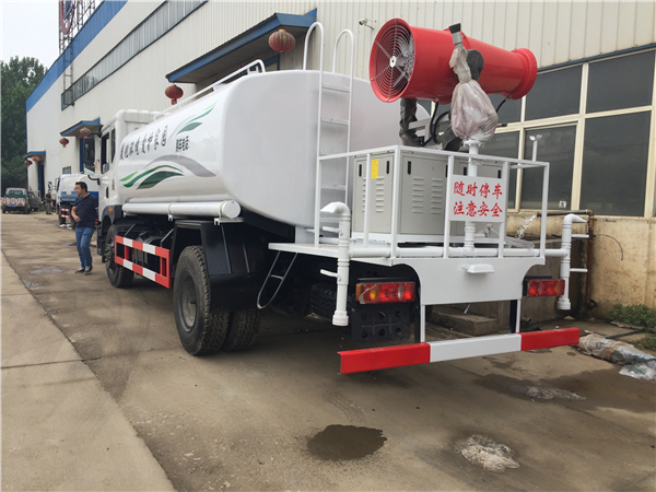 灑水車標準配置和選裝配置,有前沖、后灑、綠化澆灌、遠程水炮等裝置。采用輕質(zhì)的鋁合金材料,并設置有多重安全防護裝置與報警系統(tǒng)。灑水車罐體采用4毫米Q235碳鋼一次鑄造成型,罐體容積12立方。