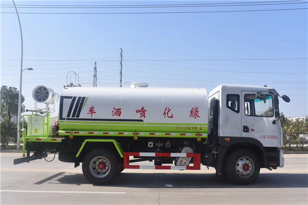 15具有活動式消塵消毒裝置的噴灑車,在保持工作幅度及噴射高度的情況下,根據(jù)結(jié)構(gòu)形式允許在360°范圍內(nèi)回轉(zhuǎn)或在上下45°內(nèi)自由調(diào)整。