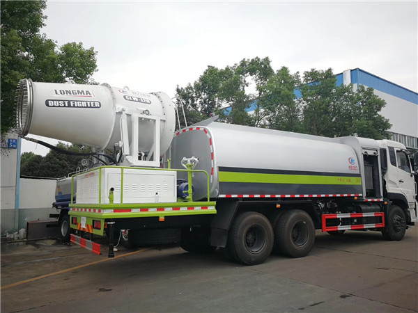 抑塵車又稱為:霧炮車、噴藥車。霧炮車噴射的水霧顆粒達(dá)到微米級(jí),能有效分解空氣中的污染顆粒物、塵埃等,在霧霾天氣下用于降塵除霧,可以有效的緩解霧霾,其節(jié)水的特性同樣也可以用作灑水車使用。霧炮車還可以降塵、灑水,把樹上的灰塵洗掉。霧炮車噴灑出的水霧與懸浮在空氣中的PM2.5和PM10粉塵顆粒吸附、聚合、沉降,達(dá)到消除污染物和減霾的目的。盡管霧炮口徑巨大,但其噴灑耗水量?jī)H為傳統(tǒng)灑水車的兩到三成,覆蓋面積和除塵效率卻高出20倍。既提高效率,也避免路面積水影響交通。