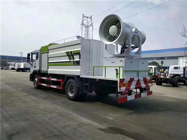 一種就是城市里面使用的抑塵車,抑塵車又稱為:霧炮車、噴藥車。霧炮車噴射的水霧顆粒達(dá)到微米級(jí),能有效分解空氣中的污染顆粒物、塵埃等,在霧霾天氣下用于降塵除霧,可以有效的緩解霧霾,其節(jié)水的特性同樣也可以用作灑水車使用。霧炮車還可以降塵、灑水,把樹上的灰塵洗掉。霧炮車噴灑出的水霧與懸浮在空氣中的PM2.5和PM10粉塵顆粒吸附、聚合、沉降,達(dá)到消除污染物和減霾的目的。盡管霧炮口徑巨大,但其噴灑耗水量?jī)H為傳統(tǒng)灑水車的兩到三成,覆蓋面積和除塵效率卻高出20倍。既提高效率,也避免路面積水影響交通。