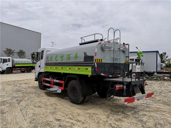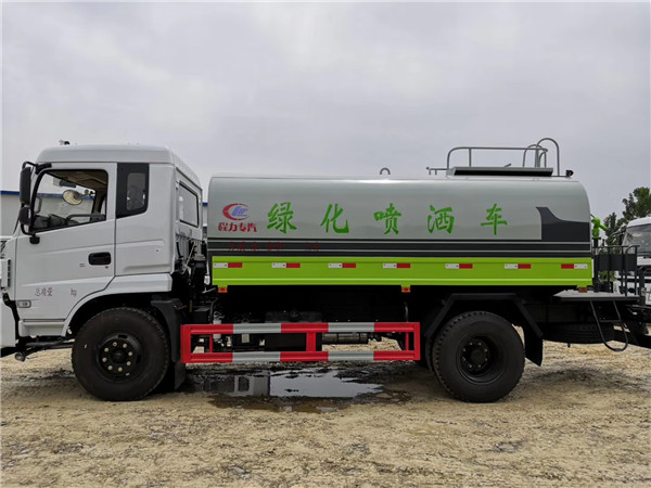 帶自流閥,消防接口。帶自吸泵,可將池塘的水直接吸入罐體內(nèi)也可直接從城市街道消防栓上連接注水,吸入罐體內(nèi)。罐前量管(觀察罐內(nèi)水位)、罐后爬梯、罐上罐口帶簡(jiǎn)易護(hù)欄、罐側(cè)雙炮筒、6米長(zhǎng)4寸鋼絲塑膠管兩根,宣城東風(fēng)12噸灑水車罐體表面雙層油漆工藝,防銹、耐腐蝕,其余有廠家標(biāo)配??蛇x擇加裝加裝藥盤、氣動(dòng)控制閥、噴藥設(shè)備、罐內(nèi)防腐等。宣城東風(fēng)12噸灑水車也可做噴藥車使用,可根椐用戶要求進(jìn)專業(yè)噴藥防腐處理,也可做企業(yè)單位運(yùn)水用,緊急時(shí)可做消防車使用。