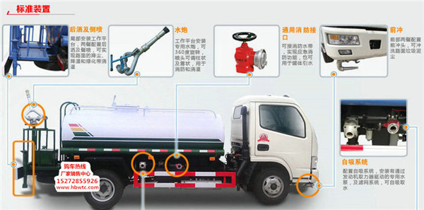 罐體用4MM碳鋼板制作,罐內(nèi)隔板具有防波作用,以減低時(shí)風(fēng)藍(lán)牌灑水車行駛時(shí)罐體液體的沖擊。整車帶一個(gè)專用灑水泵(垂直最大吸程6米),灑水寬度14米,射程28米。多功能灑水車配備2個(gè)前沖(噴)(能將路面泥巴、塵土、垃圾沖干凈);2個(gè)后灑(能均勻地將水灑在路面,一次灑水寬度14米)、2個(gè)側(cè)噴(花灑)(能均勻地將路旁綠化帶澆灌)、帶1個(gè)后工作平臺(tái),平臺(tái)上安裝1個(gè)綠化灑水高炮(灑水炮可全方位旋轉(zhuǎn),可連續(xù)調(diào)成直沖狀、大雨、小雨、毛毛雨,霧狀可調(diào)節(jié)沖洗高大樹木),引水時(shí)間<5min,流量90m3/h。帶1個(gè)消防接頭,帶1個(gè)自流閥,1個(gè)過濾裝置、人性化爬梯及側(cè)防護(hù)欄,安裝灑水音樂喇叭。