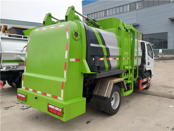 若再次裝載垃圾,請(qǐng)?jiān)倮^續(xù)從步驟1-7(旋轉(zhuǎn)刮板操作旋鈕至收位,準(zhǔn)備開始掛桶)開始循環(huán)操作;若不需要再次裝載,旋轉(zhuǎn)翻桶操作旋鈕至右上翻位置,翻桶機(jī)構(gòu)翻起,然后松開取力器,整車方可移動(dòng)。旋轉(zhuǎn)推板操作旋鈕至右推出位置,車箱內(nèi)推板將垃圾推出車箱,松開旋鈕完成卸垃圾工作。