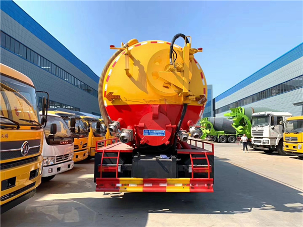 而東風天龍清洗吸污車帶副發(fā)則可以通過升舉罐體,打開后蓋的方式直接排污,沒有排放殘留,不需要清理罐體。如果長時間不用車,為了減少罐體的腐蝕,需要將罐體內部沖洗干凈。東風天龍清洗吸污車帶副發(fā)沖洗罐體內壁是,需要人進入罐體內,用水來沖洗罐體內壁。而東風天龍清洗吸污車帶副發(fā)在沖洗罐體內壁時,可以在打開罐體后蓋后,就站在罐體外面利用水龍頭沖洗就可以了。