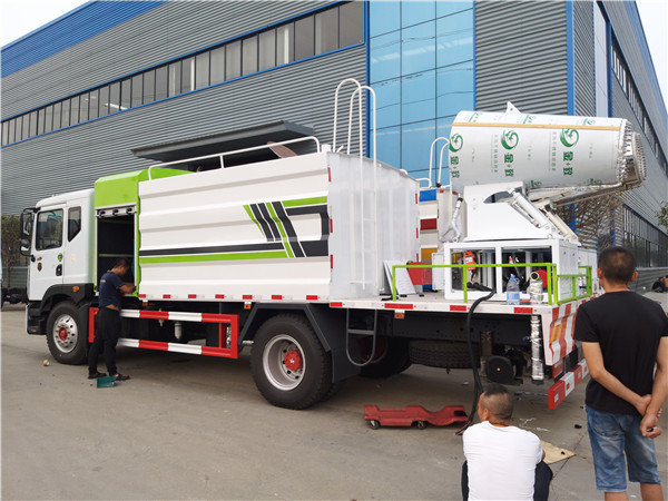 礦山10噸抑塵車的操作平臺比較簡單,就是用鋼板切割成一個平臺,然后把它焊接在礦山10噸抑塵車的后部,裝上高炮及后噴頭,再用管道和底部連接起來,最后在平臺的周圍焊上圍欄。