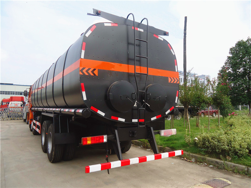 解放前四后八液態(tài)瀝青運輸車采用電加熱系統(tǒng),恒溫控制系統(tǒng)、保溫系統(tǒng)、卸料口、操作系統(tǒng)等。