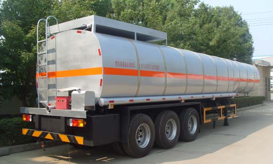 38立方液態(tài)瀝青半掛運輸車:采用瀝青泵進泵出,柴油燃燒器加熱系統(tǒng),保溫系統(tǒng)。