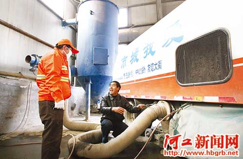 在掃路車車廂下裝上一根大管子,直接吸走粉塵、雜物,最大程度地降低揚(yáng)塵現(xiàn)象。近日,在石家莊市橋西區(qū)環(huán)衛(wèi)大隊(duì)粉塵清倒車間,這臺(tái)巨型“吸塵器”和他的發(fā)明人——環(huán)衛(wèi)大隊(duì)副大隊(duì)長(zhǎng)劉秀江給我們介紹了這臺(tái)掃路車。