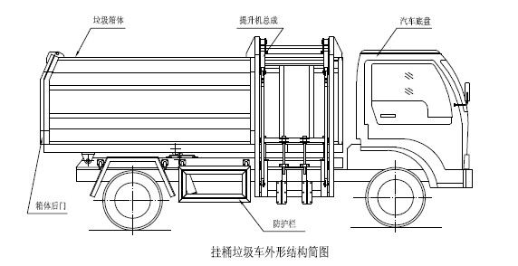 程力專用汽車掛桶式垃圾車(以下簡(jiǎn)稱垃圾車)是用于城鎮(zhèn)內(nèi)的垃圾收集、轉(zhuǎn)運(yùn)、卸料作業(yè)的專用車輛。該車是由汽車底盤、自卸油缸、提升機(jī)總成、頂蓋(選裝)、附車架、垃圾箱體等組成。該車操作由液壓控制系統(tǒng)來完成,控制方式可以為手動(dòng)或電氣控。該車主要用于城鎮(zhèn)垃圾的垃圾收集、轉(zhuǎn)運(yùn)和卸料。操作開提升控制閥將垃圾桶隨提升機(jī)向上升起并翻轉(zhuǎn)傾斜,桶內(nèi)垃圾被倒入車廂內(nèi)完成垃圾單次裝載,反向操作提升控制閥,垃圾桶隨提升機(jī)而放下;完成垃圾裝載后再進(jìn)行傾卸時(shí),操作自卸控制閥,垃圾箱繞后翻轉(zhuǎn)軸傾斜體舉,箱體后門打開,垃圾傾卸出箱體;起該車由液壓控制系統(tǒng)來完成該車的提升機(jī)的上升和下降及垃圾的自卸功能,降低了工人的勞動(dòng)強(qiáng)度和改善了工作環(huán)境。該垃圾車的收運(yùn)方式是目前國(guó)內(nèi)泛采用的垃圾收集轉(zhuǎn)運(yùn)方式,其專用裝置的功能均以汽車發(fā)動(dòng)機(jī)為動(dòng)力,通過液壓機(jī)構(gòu)手動(dòng)或電控、氣控來實(shí)現(xiàn)。車輛的箱體采用優(yōu)質(zhì)炭鋼板全密封焊接結(jié)構(gòu),具有強(qiáng)度高、重量輕,防塵、防溢不產(chǎn)生二次污染等優(yōu)點(diǎn)。垃圾車整車基本性能與原底盤車相同,用戶請(qǐng)參閱原底盤車使用手冊(cè)。本用說明書僅介紹專用改裝部分的有關(guān)操作、檢查和維修保養(yǎng)。在使用車輛前,我們強(qiáng)烈要求您能夠通讀本說明書,并對(duì)其中的操作程序做到得心應(yīng)手。我廠對(duì)產(chǎn)品將會(huì)進(jìn)一步改進(jìn)。產(chǎn)品的改進(jìn)、性能的提高、結(jié)構(gòu)的不斷完善恕不另行通知,從而有某些說明不適用于您的特定車輛,敬請(qǐng)諒解。