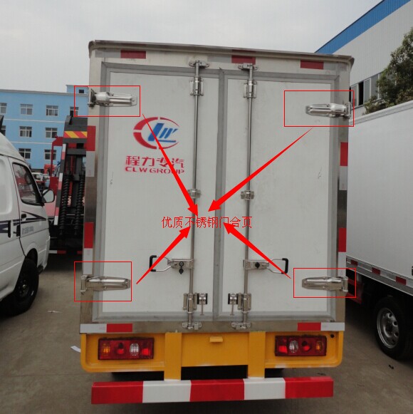 ②可改裝肉鉤冷藏車廂(標(biāo)配4條加厚鋁合金滑道,不銹鋼固定件,不銹鋼螺絲,不銹鋼固定環(huán),不銹鋼304材質(zhì)雙肉鉤)廂體保溫性好,整體強(qiáng)度大。